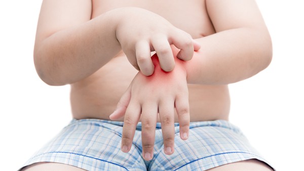 2、食物过敏:由海鲜、牛奶、鸡蛋、花生、小麦、新鲜桃子、大豆和食品添加剂引起。
